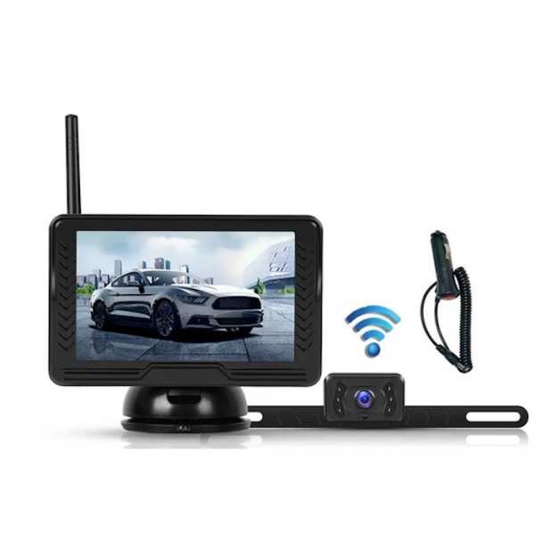 Funk Rückfahrkamera, 4,3" Monitor, Funkantenne für Monitor, Ladeadapter für Zigarettenanzünder,